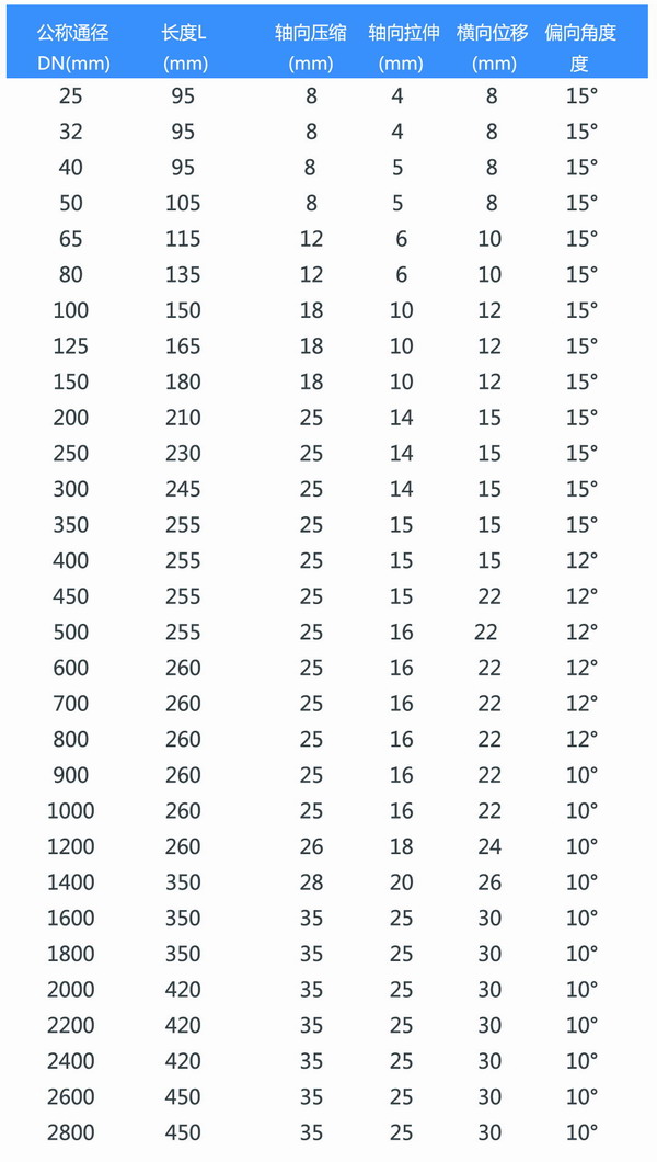 2、安装后可吸收管道震动产生的横向、轴向、角向位移;不受管道不同心,法兰不平行的限制。